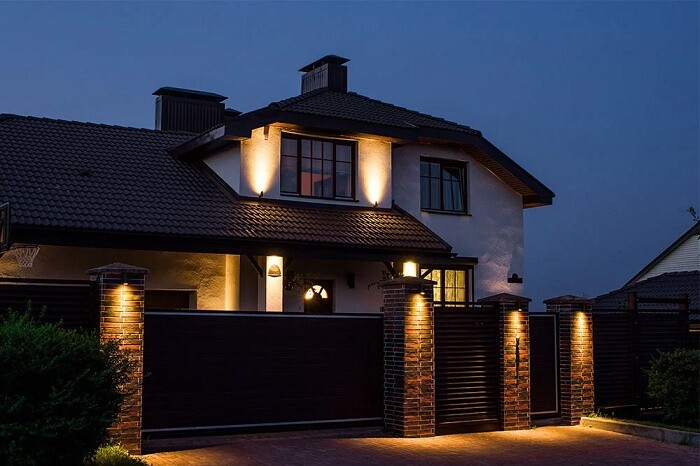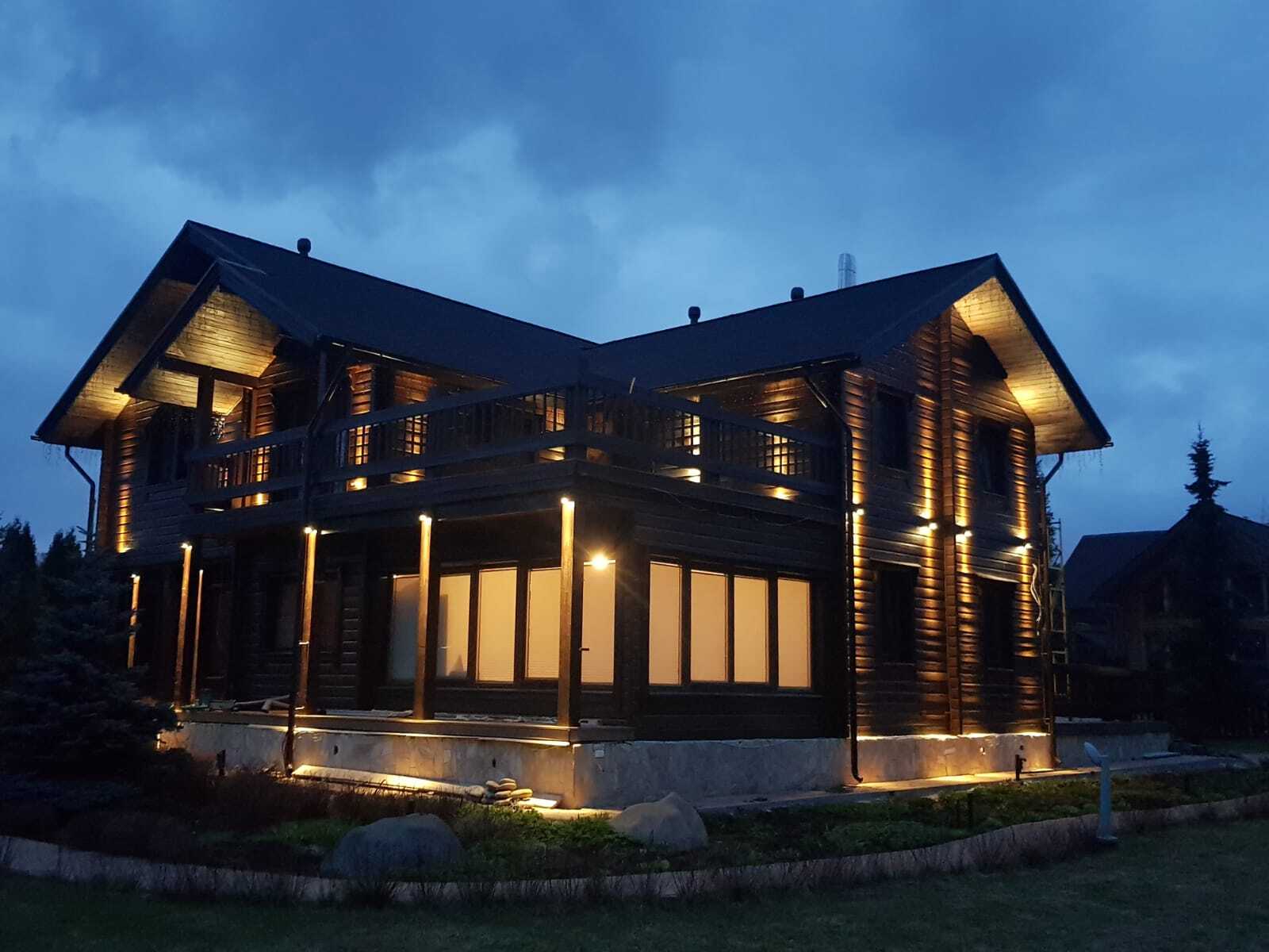 Мы используем специальное оборудование, максимально адаптированное под загородные дома и усадьбы. все наши светильники имеют компактный размер, защитную противоослепляющую бленду. Крепления созданы с учётом максимальной незаметности и скрытого подключения к сети. Все светильники могут быть окрашены в цвет фасада. А главное вы получаете заводскую гарантию 5 лет.